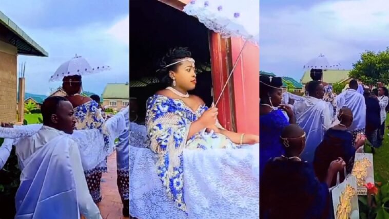 Umugena ni uyu! Umugeni ku munsi w’ubukwe bwe yanze kugendesha amaguru maze basaza be bamuheka ku ngobyi – VIDEWO