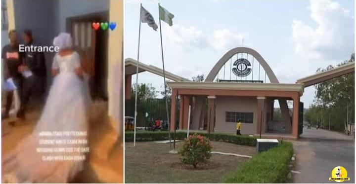 Ku mbuga nkoranyambaga zitandukanye muri Nigeria hasakaye amashusho agiye atandukanye y’umukobwa winjiye mu Ishuri yigamo yambaye ikanzu y’ubukwe agiye gukora ikizamini nyuma y’uko umunsi w’ubukwe bwe uhuriranye n’umunsi w’ikizamini.