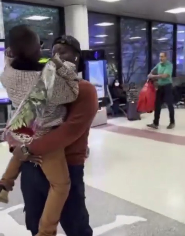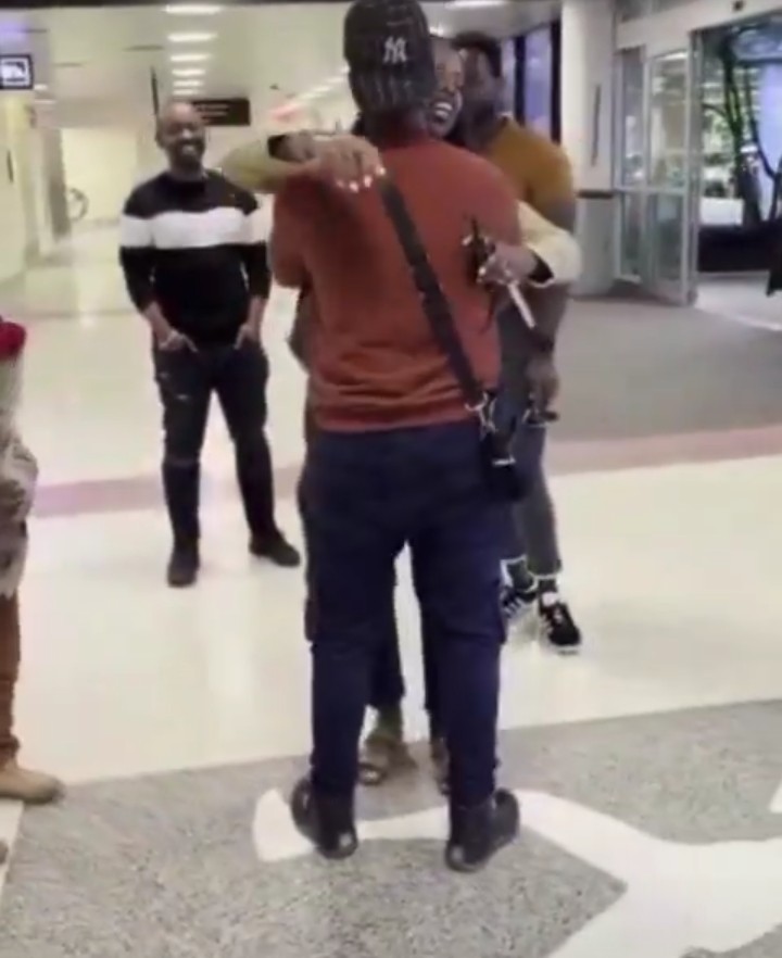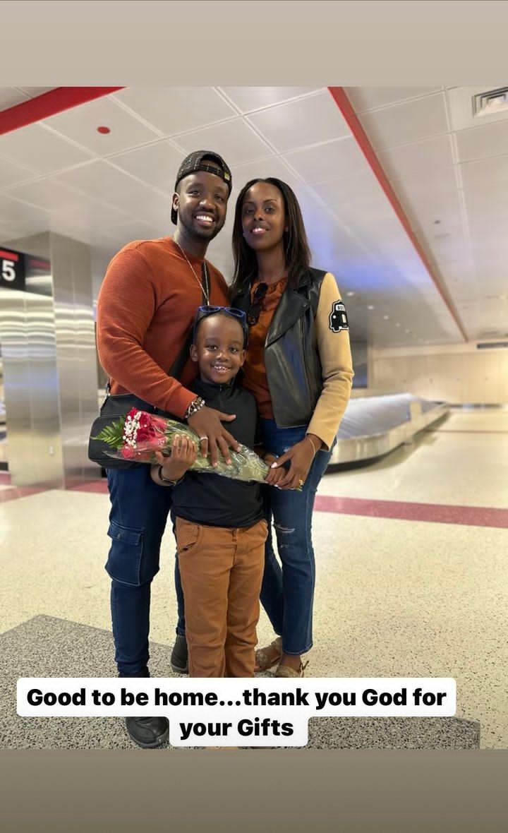 Umuryango we urimo umwana ndetse n’umugore we n’inshuti z’umuryango baje kumwakira ku kibuga cy’indege bamugaragariza urukumbuzi rwinshi nkuko bigaragara mu mafoto.
