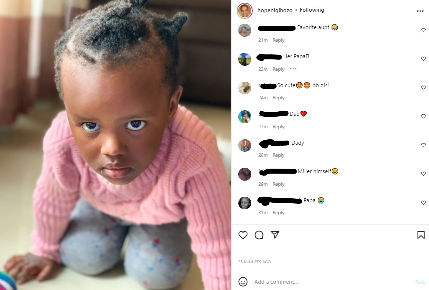 Ku rukuta rwe rwa Instagram, Hope Igihozo yabajije abamukurikira uwo babona muri iyo foto, abafana bandika ubutumwa bwinshi butandukanye burimo amarangamutima menshi :