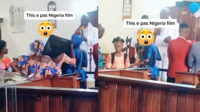 Umugore witwaje abana yahagaritse ubukwe bw’umugabo we mu rusengero(video)