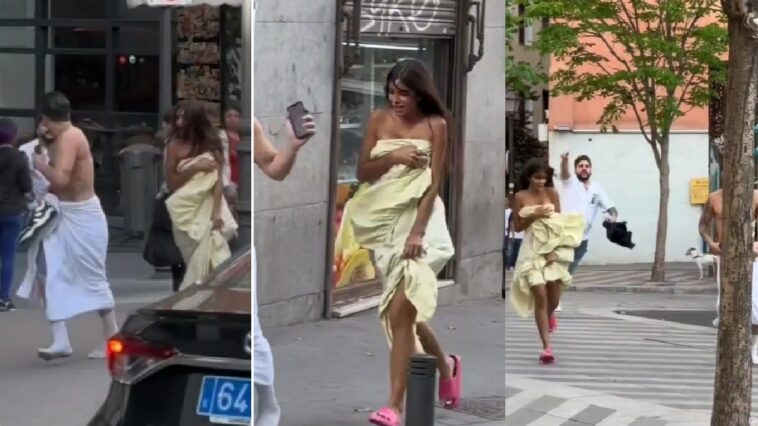 Umugore yafatiwe mu cyuho arimo gusambana n’undi mugabo maze bombi babirukaho mu muhanda batarambara imyenda – VIDIO