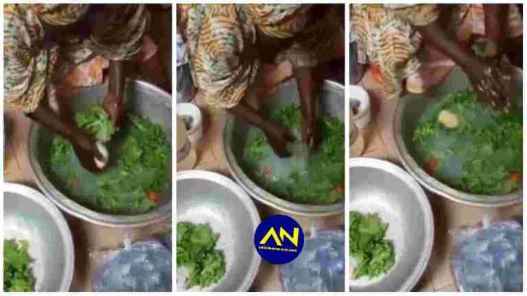 Umugore wo mu gihugu cya Ghana yafotowe arimo gufurisha isabuni imboga yari agiye gucùruza nkuko byagaragaye mu mashusho yasakaye kuri Twitter.