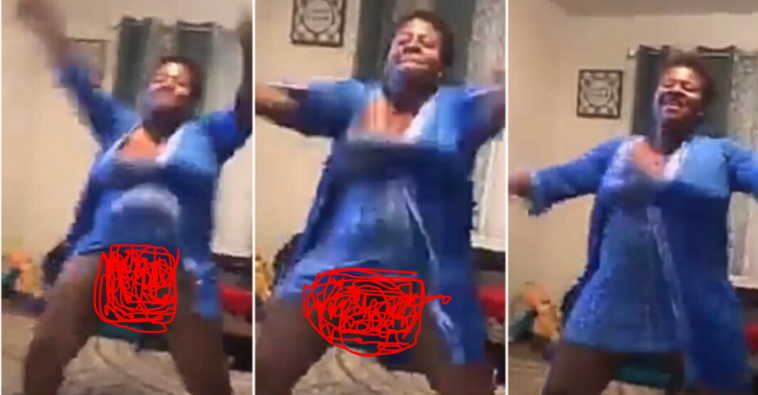 Umugore wari wambaye ikanzu yo kurarana y’ubururu nta mwenda w’imbere yari yambaye, yerekanye ibice bye by’ibanga ubwo yabyinaga indirimbo yumvikana mu mashusho