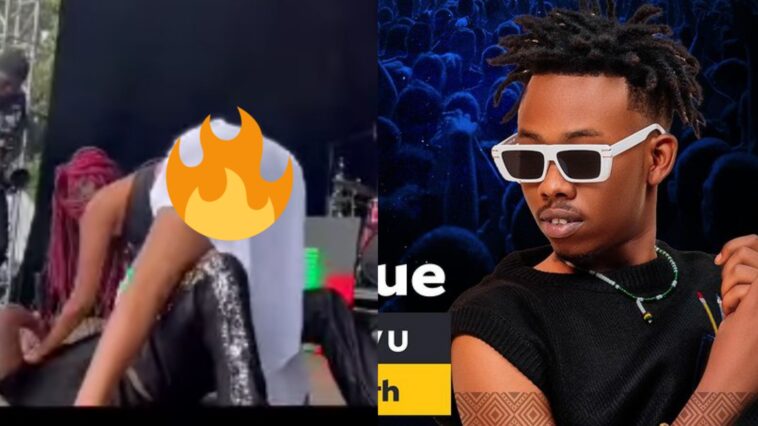 Umuhanzi afrique yakaragiwe umubyimba n’inkumi y’ikimero yenda kubura umwuka aho yari agaramye hasi ku rubyiniro(Videwo)