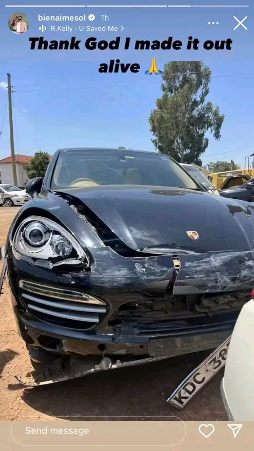 Umuhanzi Bien-Aimé Baraza uzwi mu itsinda rya Sauti Sol, ari mu mashimwe akomeye nyuma yo kurokoka impanuka yakoze yari iteye ubwoba.