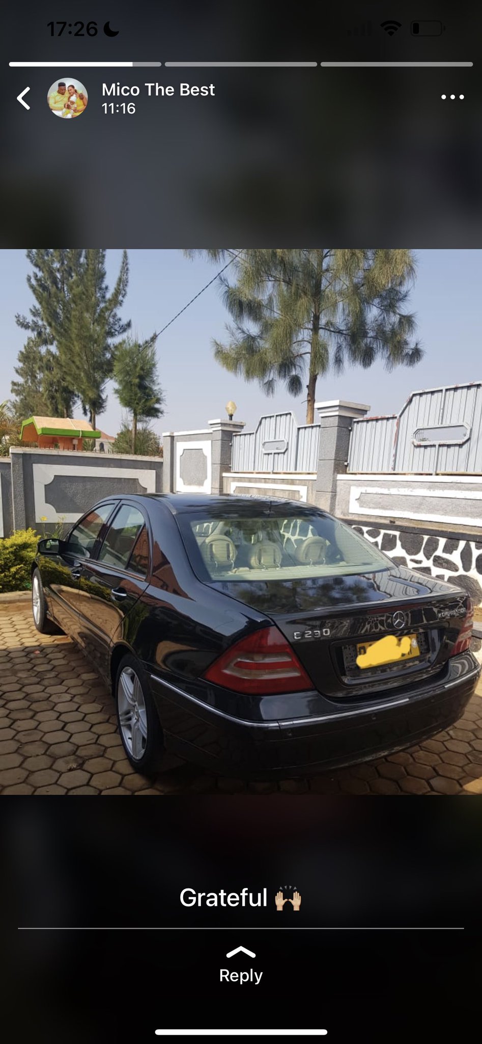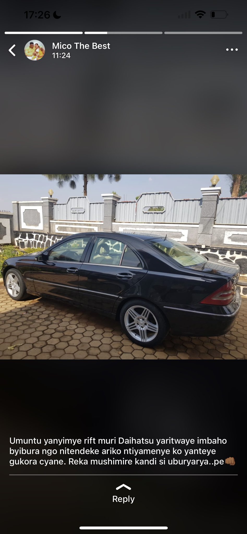 Mu magambo yashyize kuri status yishimiye kugura imodoka yo mu bwoko bwa Benz ndetse yongera kwibutsa umuntu wigeze kumwima rift muri Daihatsu yari itwaye imbaho ko nawe yaguze iye.