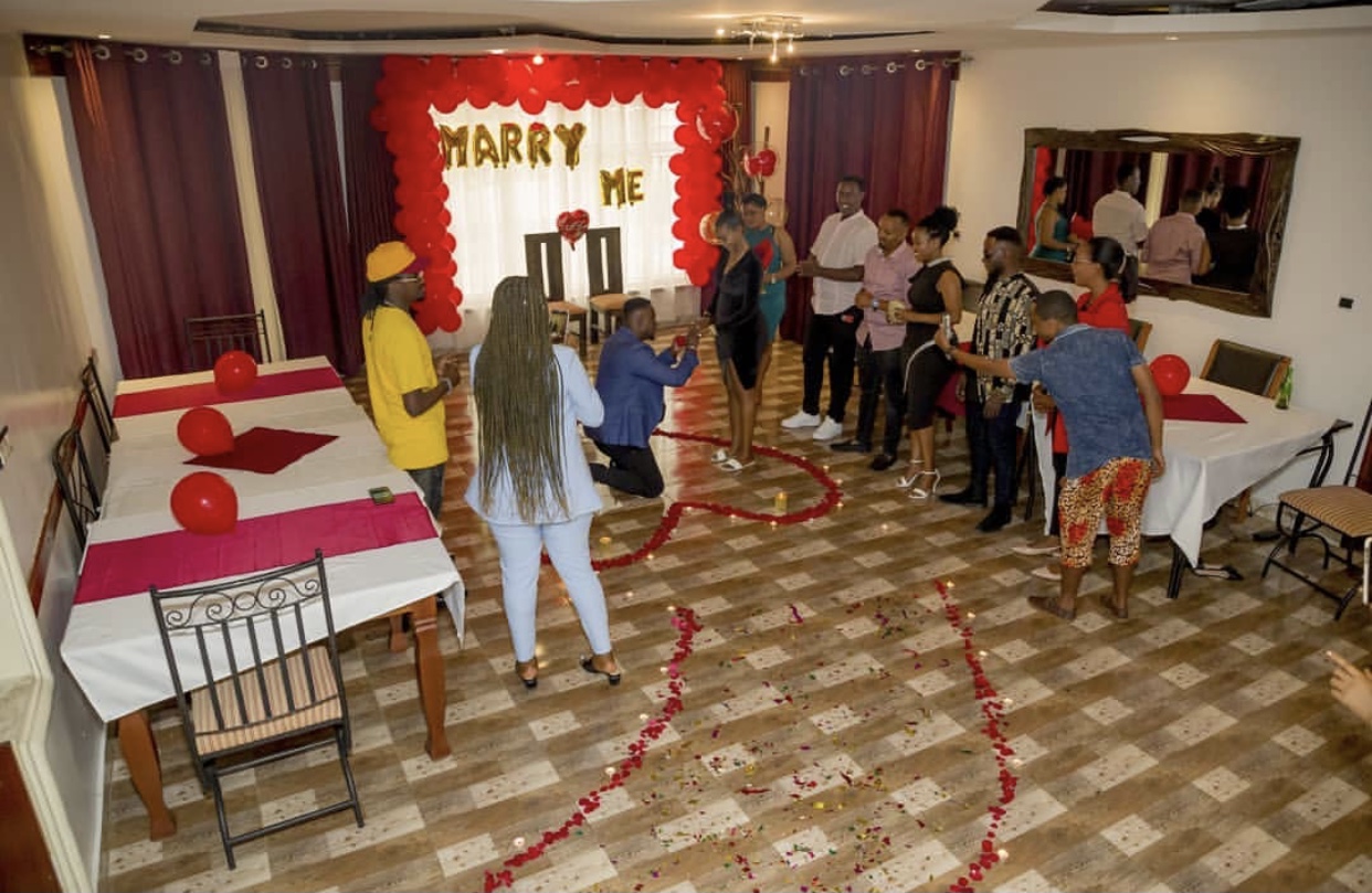 Umuhanzi Mico The Best, wamamaye hano mu Rwanda mu ndirimbo zitandukanye ziri mu njyana ya RnB, Pop n’izindi, yateye ivi asaba umukunzi we, Clarisse, ko yazamubera umugore maze umukunzi we na we ntiyazuyaza ahita amwemerera, niko kumwambika impeta.