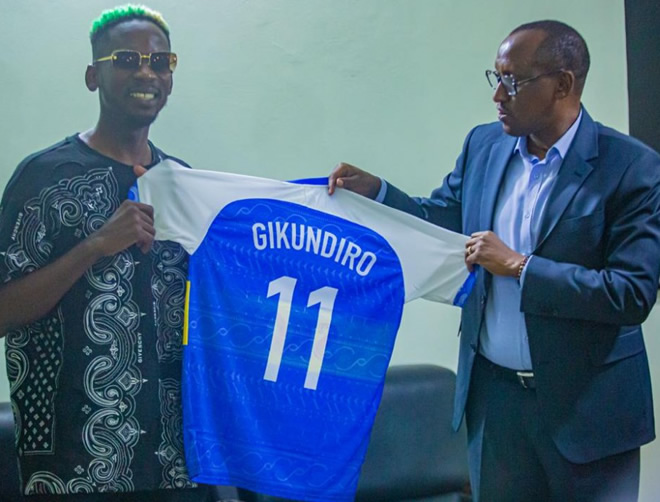 Nyuma y’umukino umuhanzi Mr Eazi yagaragaye ari kumwe na Perezida Uwayezu Jean Fidele bishimira intsinzi ya Rayon Sports ndetse aza no guhabwa umwambaro w’iyi kipe wa nimero 11.