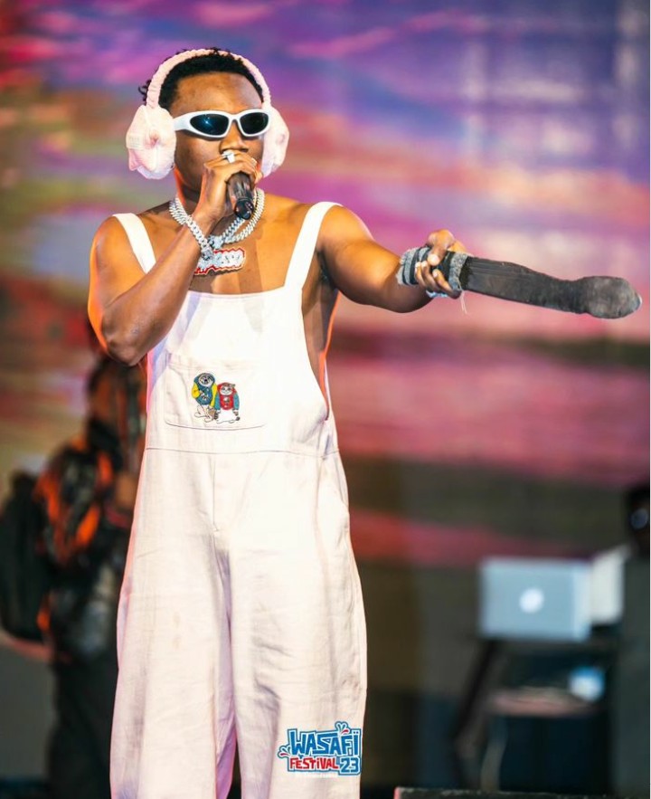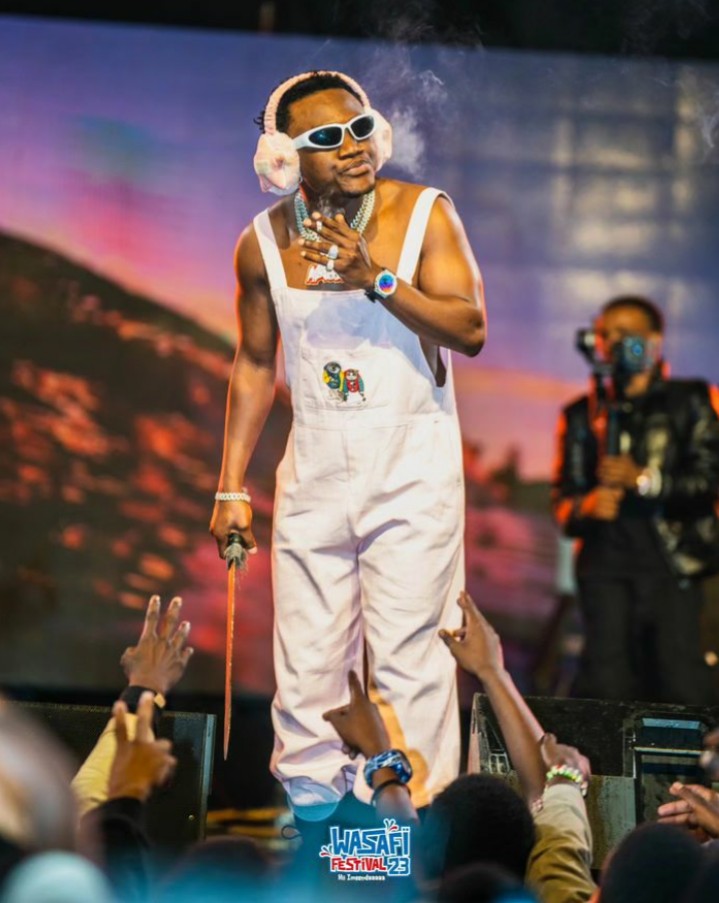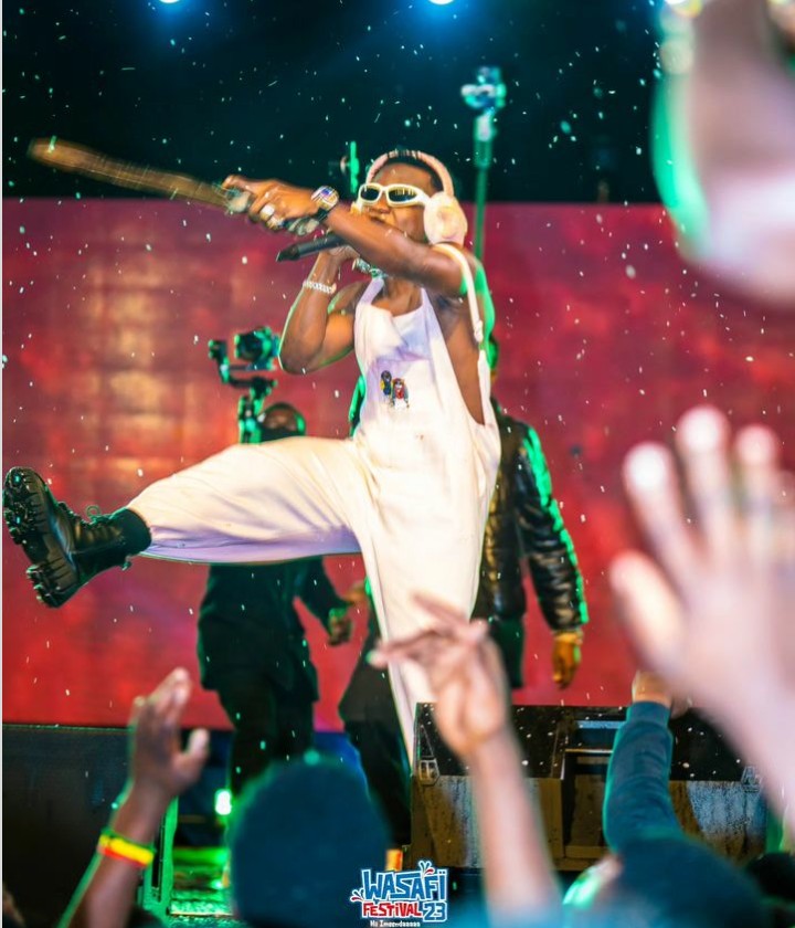 Mbosso ibi yabikoze mu bitaramo bya Wasafi imazemo iminsi, byitwa Wasafi FESTIVAL. Ubushize Mbosso nabwo yaratunguranye cyane kuko bwo yaje afite agataburete, afite n’iparato yuzuye ubugari, afite itabi, afite n’amazi yo gusomeza ubwo bugari, none kuri iyi nshuro bwo yaje afite umuhoro.