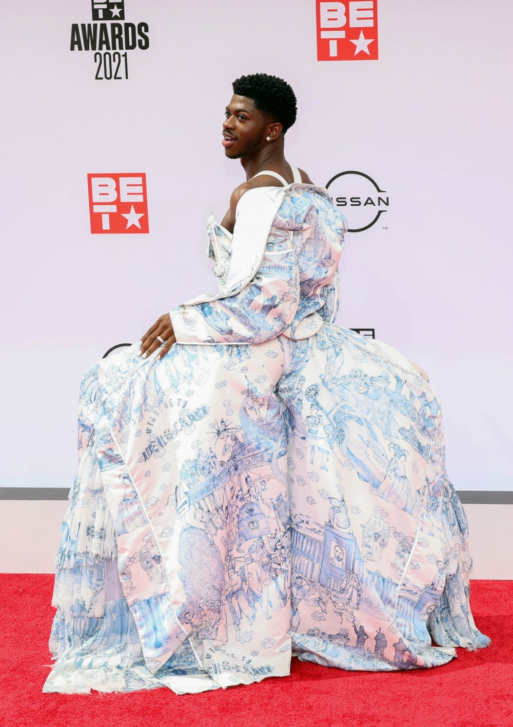 Lil Nas X yagiye mu birori bya BET n’ubundi yambaye ikanzu ndende bitangaza benshi bavugaga ko yakabaye yambarwa n’igitsinagore gusa.