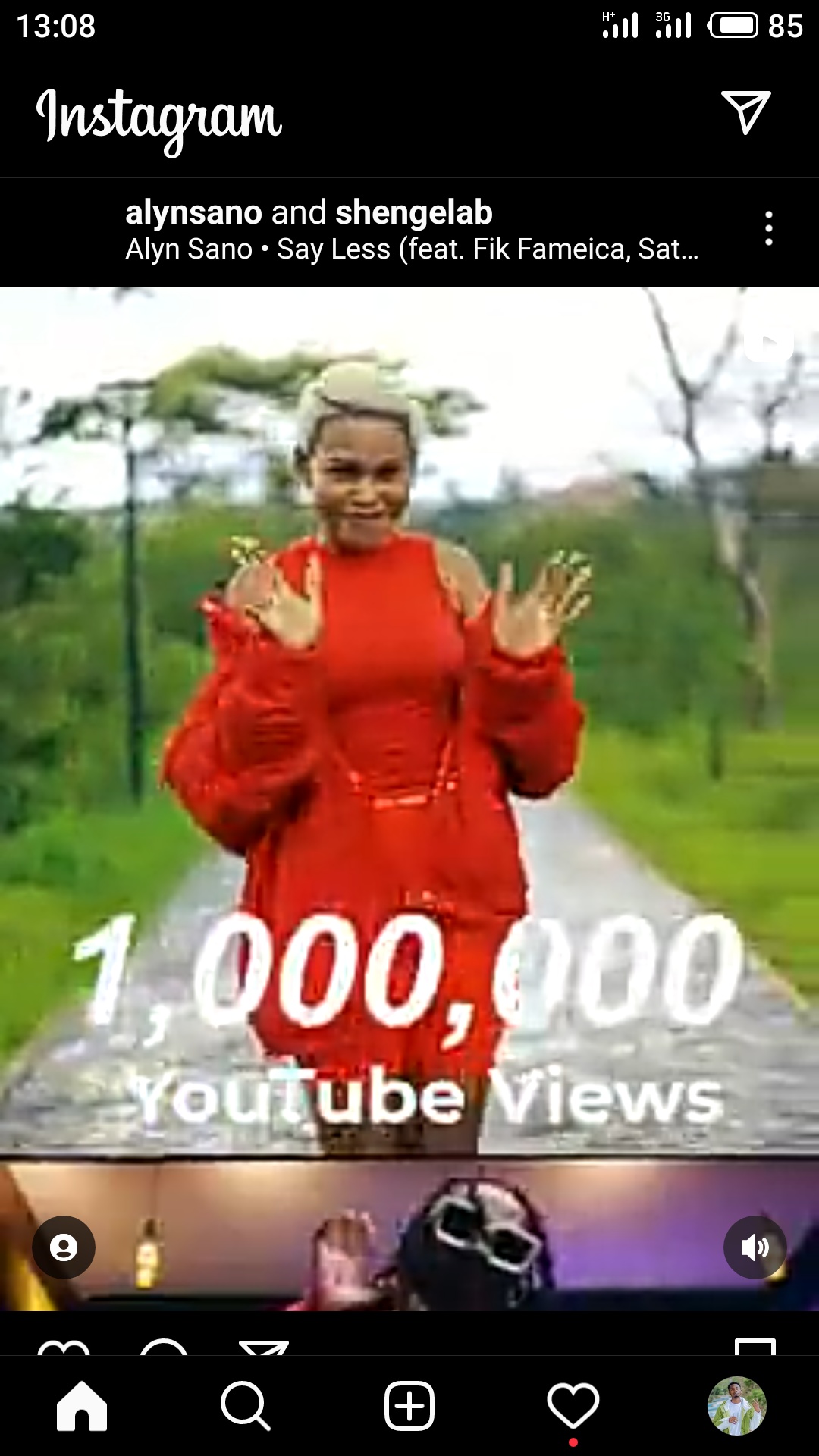 Umuhanzikazi Alyn Sano abinyujije kuri Instagram ye yashimiye abafana be bagize uruhare kugira ngo indirimbo ye yuzuze miliyoni yabayirebye ku rubuga rwa YouTube nyuma y’ibyumweru bine.