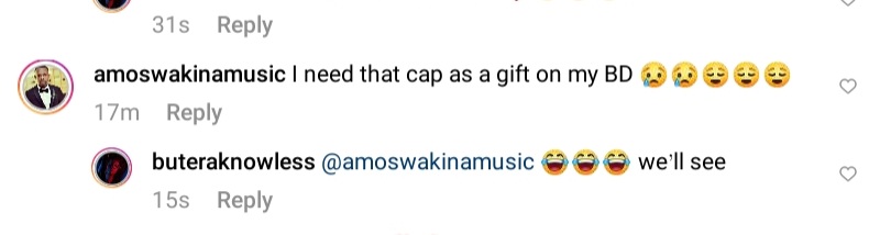 Kuri uyu wa Gatandatu tariki 25 Kamena 2022 nibwo uyu muhanzikazi yashyize kuri Instagram amashusho ye ari mu modoka yambaye ingofero.Umwe mubafana be yahise ajya ahandikirwa ubutumwa maze amusaba ko ku munsi wisabukuru ye yazamuha impano y’ingofero nk’iyo yari yambaye.Butera Knowless ntiyazuyaje amubwira ko nta kibazo bazabireba. Ni uko aba amwereye impano atyo