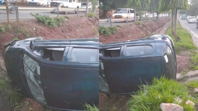 Imodoka yari arimo, yarenze umuhanda maze igwa mu wundi muhanda aho yagushije urubavu.