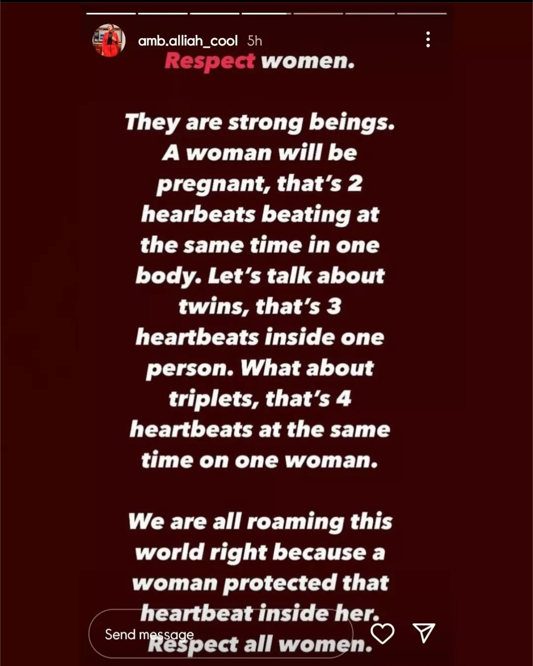 Ibi Alliah cool yabitangaje mu butumwa yashyize kuri Instagram story ye agira Ati ” Ubaha abagore, ni ibiremwa bikomeye. Umugore azatwita, imitima ibiri iterere icyarimwe.