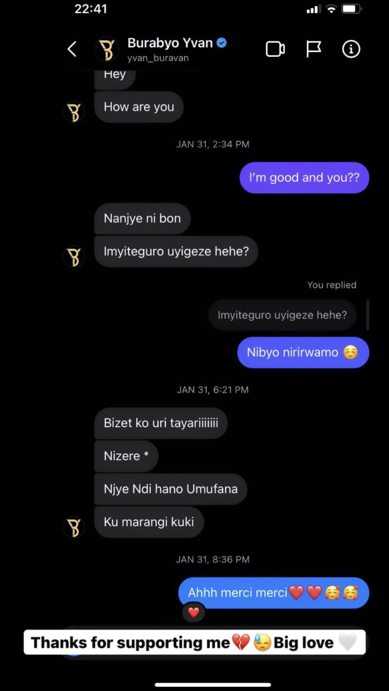 Umuhoza Pascaline yashyize hanze bumwe mu butumwa yagiranye na Yvan Buravan aho yamweretse ku mushyigikira ubwo yajyaga mu irushanwa rya Miss Rwanda 2022.