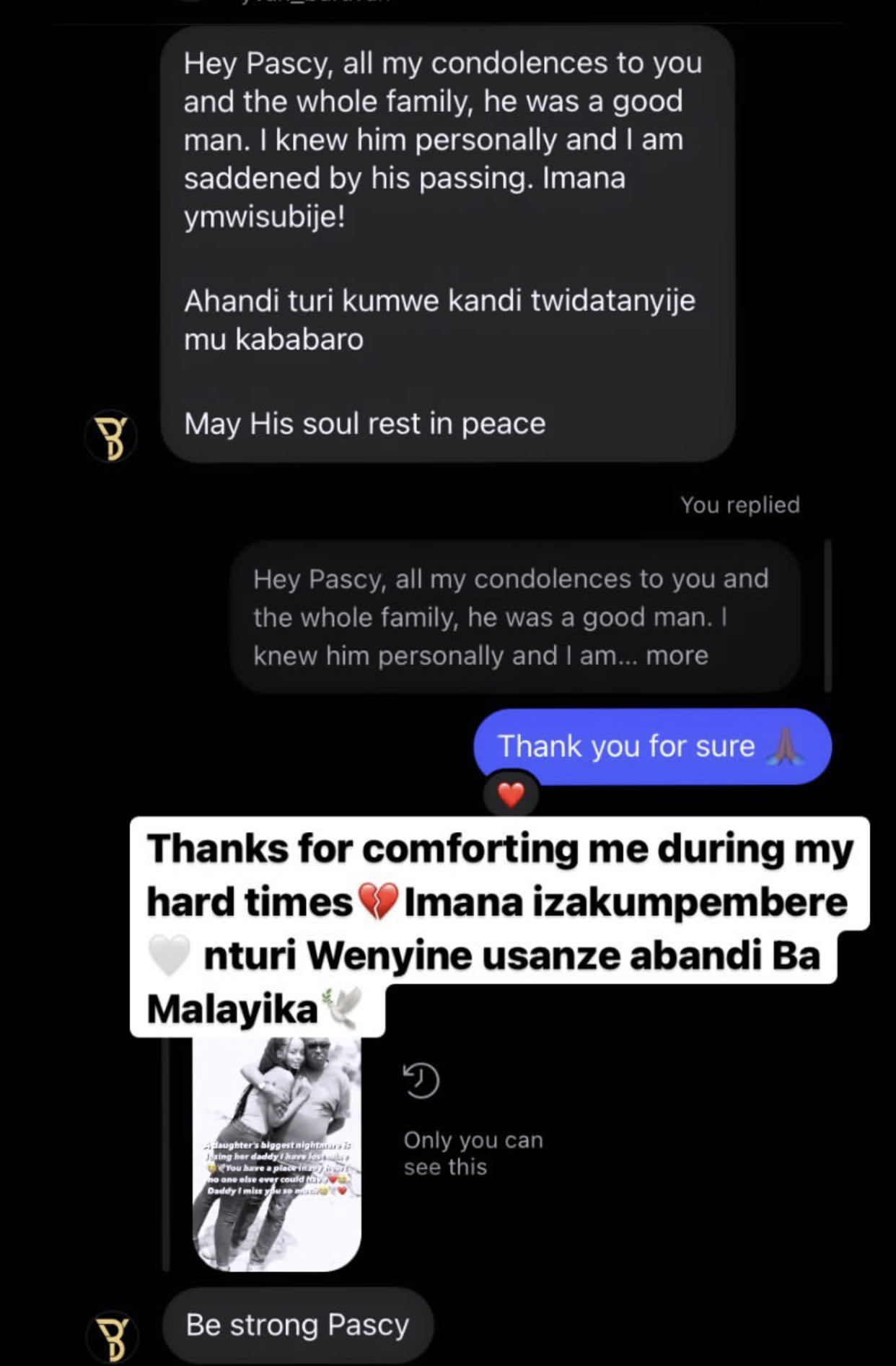 Pascaline uherutse kubura umubyeyi we Yvan Buravan kandi yamwandikiye ubutumwa ndetse amukomeza mu bihe bikomeye yarimo akaba ari urwibutso amusigiye.