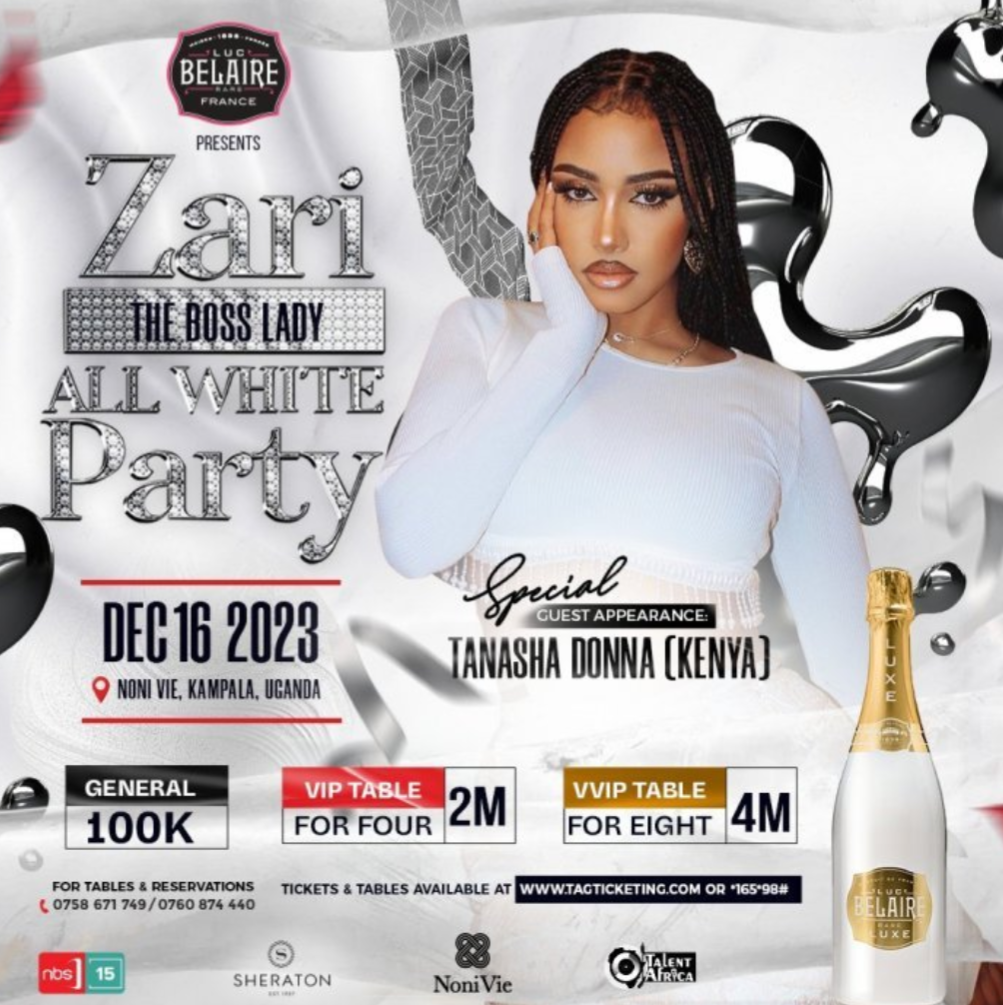 Umuherwekazi w’umugande, Zari Hassan yatumiye mu kirori cye cya “All White Party”, Tanasha Donna basangiye umugabo Diamond Platnumz ariko bose bakaba baratandukanye na we.