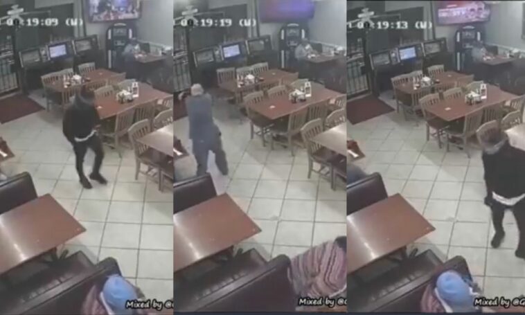 Gusa icyo atari yamenye ni uko umwe mu bagabo bari muri iyo resitora arikurya nawe yari yitwaje imbunda ntoya ,ibi byaje gutuma uyu mukiriya aca urwaho uwo mujura akamurasa akamwica n’ubwo ababonye amashusho bagaye iki gikorwa cyo kumurasa amwica ,