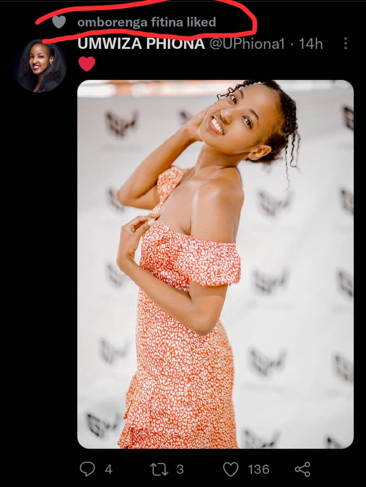 Ni nyuma yuko Ombolenga Fitina agiye kuri Twitter maze agakunda (like) ifoto Miss Phiona Umwiza yari amaze gushyira hanze.
