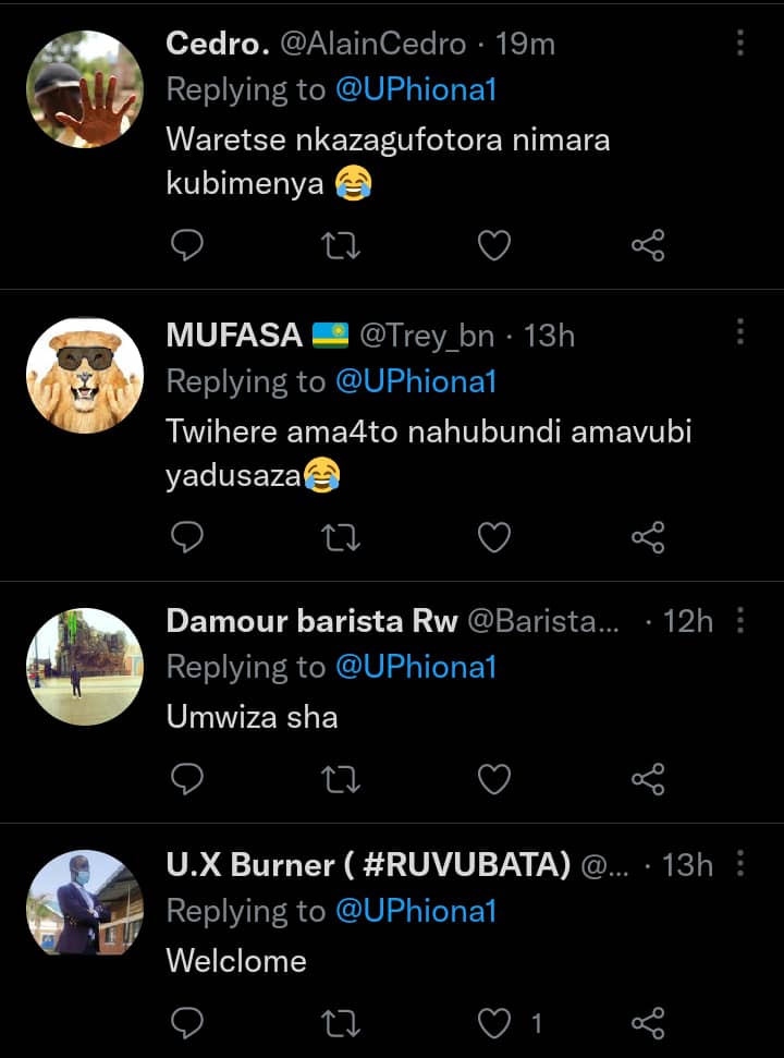 Si Ombolenga Fitina gusa wabengutswe Miss Umwiza Phiona kuko n’abandi bantu benshi biganjemo ab’igitsina gabo babengutwe Miss Phiona kuva ubwo yafunguzaga konti ye kuri Twitter muri Gashyantare 2020.