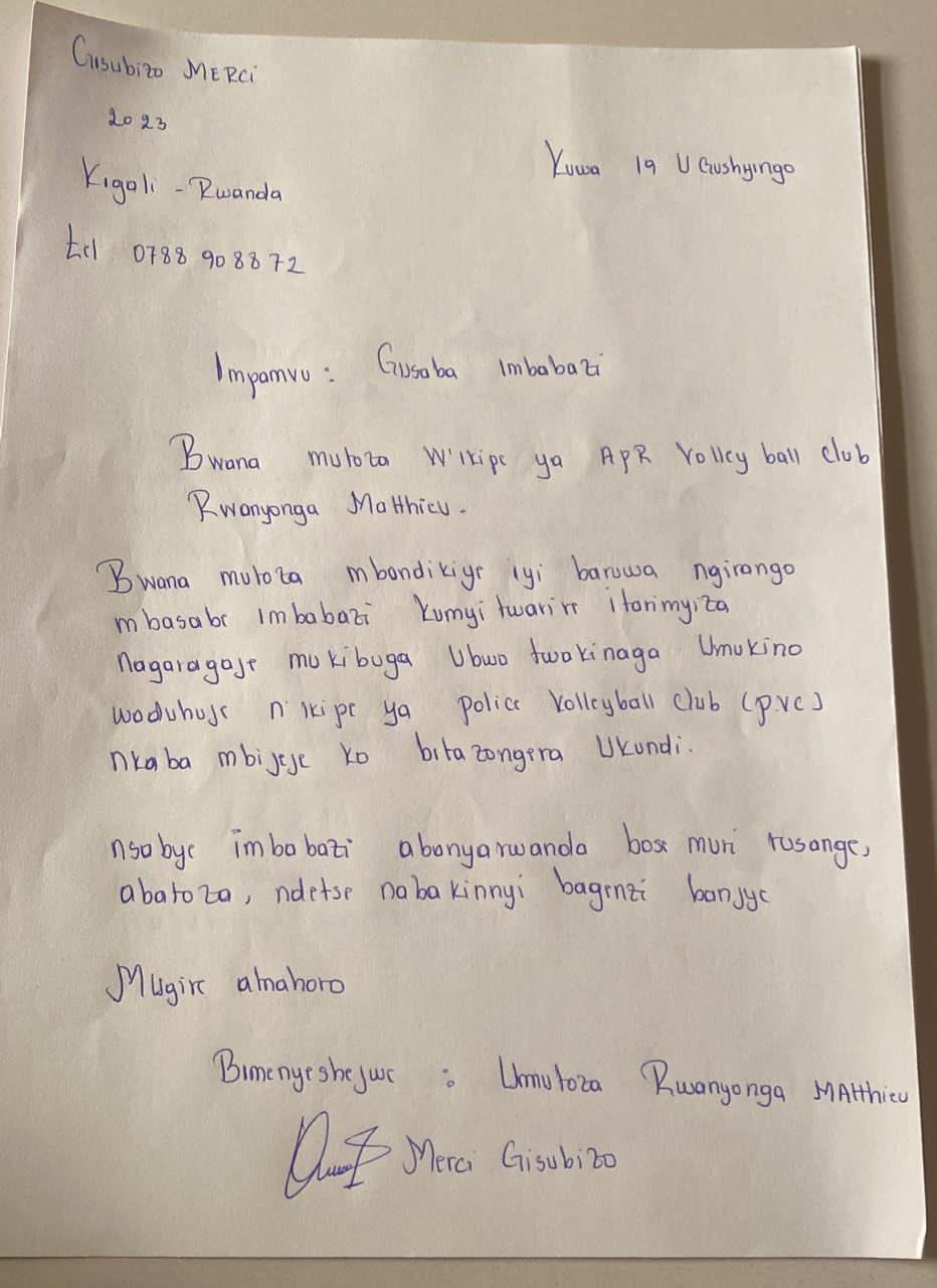 Nyuma yo gukubita umutoza we akamuvisha amaraso Gisubizo Merçi yanditse ibaruwa isaba imbabazi