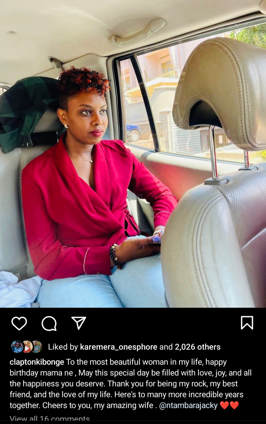 Abinyujije ku rukuta rwe rwa Instagram Clapton yashyizeho ifoto y’umufasha we, ayikurikiza amagambo meza y’ururkundo, amwifuriza kugira umunsi mwiza w’amavuko.