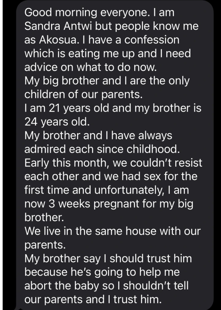 Umukobwa ari mu gahinda nyuma yo kuryamana na musaza we ,none arashaka gukora amabara.