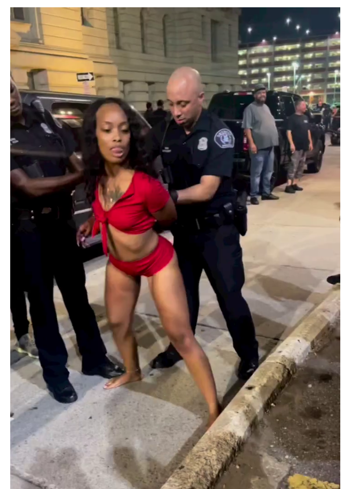 Umukobwa w’ikizungerezi wari wambaye akenda k’imbere gusa yazungurije ikibuno abapolisi bashaka kumufunga abantu barumirwa