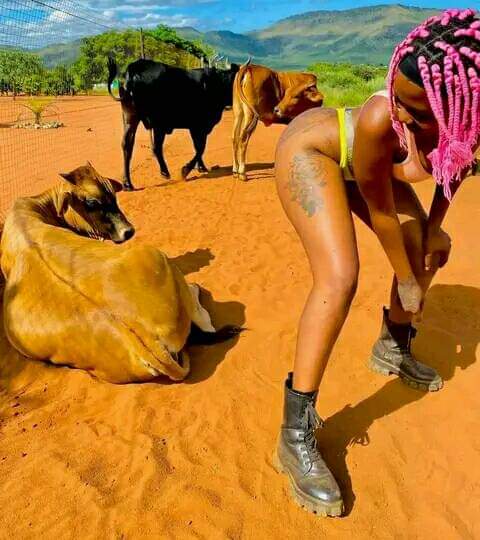 Umukobwa w’uburanga yagaragaye ari kwereka ihene imyanya y’ibanga ye (Ifoto)