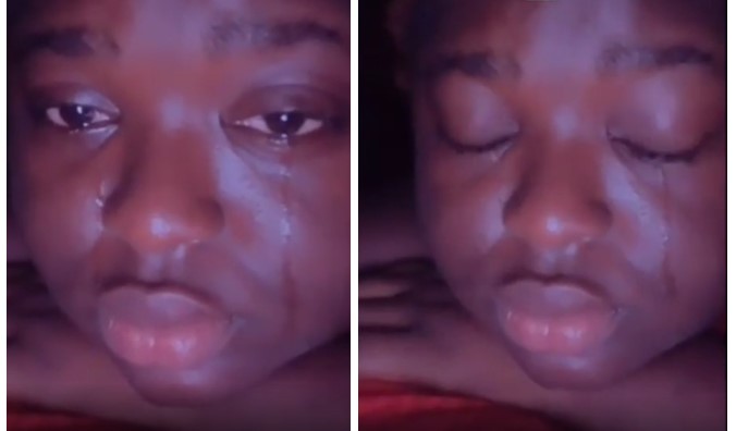 Uyu mukobwa yaryamye ku buriri arira cyane mu gihe inshuti ze zagerageje kumuhoza ariko biba iby’ubusa.