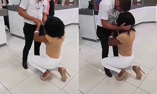 Amashusho yagiye ahagaragara agaragaza umukobwa uri gutera ivi afite n’impeta asaba umusore ko bashyingirwnwa akamubera umugabo.