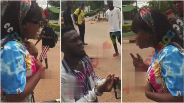 Umusore yahondaguwe inshyi n’umukobwa yari agiye kwambika impeta.Nk’uko bigaragara mu mashusho yasakaye kuri instagram, agaragaza umusore yashinze ivi ,ndetse afite impeta mu ntoki.Uyu musore yari ategereje igisubizo cy’umukobwa yashakaga kuzagira umugore.