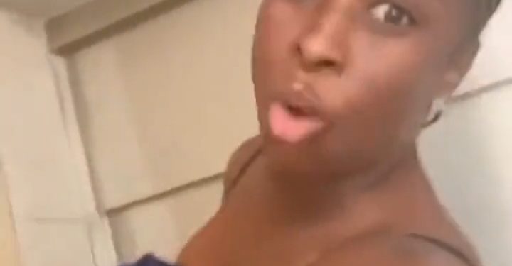 Mu mashusho yashyizwe ku rubuga rwa twitter umukobwa agaragara arikwirukanwa n’umusore wari wambaye akenda k’imbere konyine ,mu gihe umukobwa nawe yari yambaye isume yonyine ari guhungiza mu myanya y’ibanga ye kubera ubwokere yumvagamo.