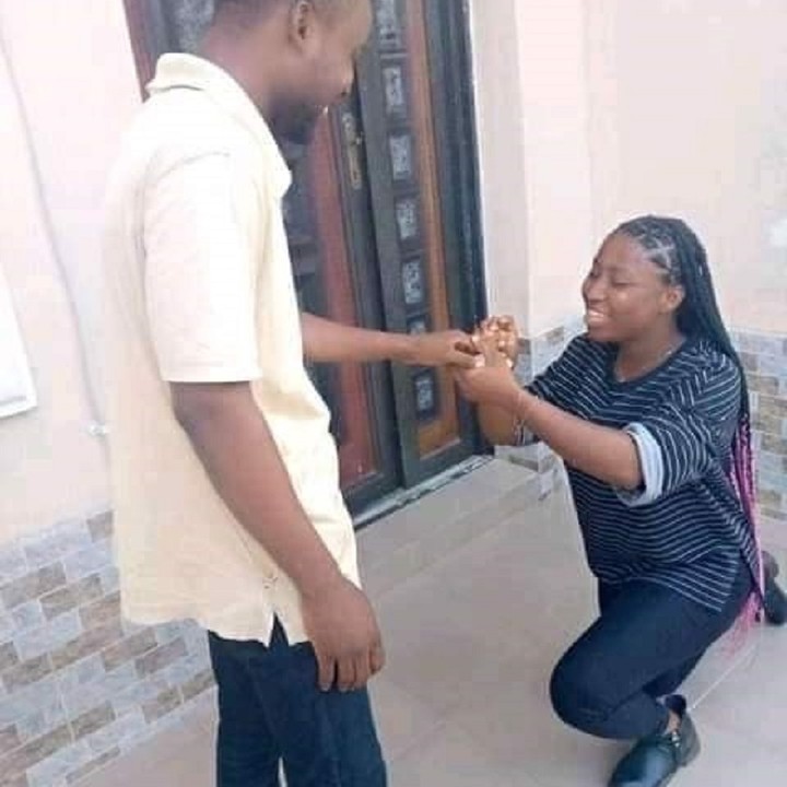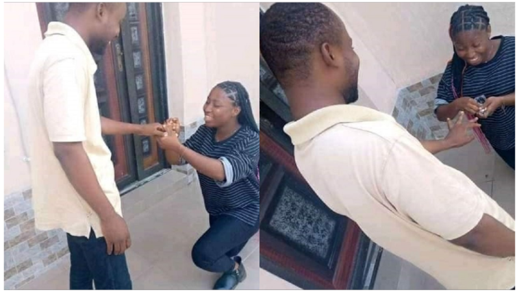 Umukobwa yahuruje imbaga nyuma yo gupfukama akambika impeta umusore, ibintu bisanzwe bimenyererwe ko bikorwa n’abasore.