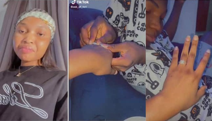 Muri videwo yashyize ku mbuga nkoranyambaga abinyujije kuri konti ye @ask_of_tori, uyu mugabo yamusabye ikiganza mu ishyingiranwa rye nta jambo na rimwe avuze.Umusore n’umukobwa bombi bari bicaye ku buriri amufata ukuboko ashyira impeta mu rutoki.