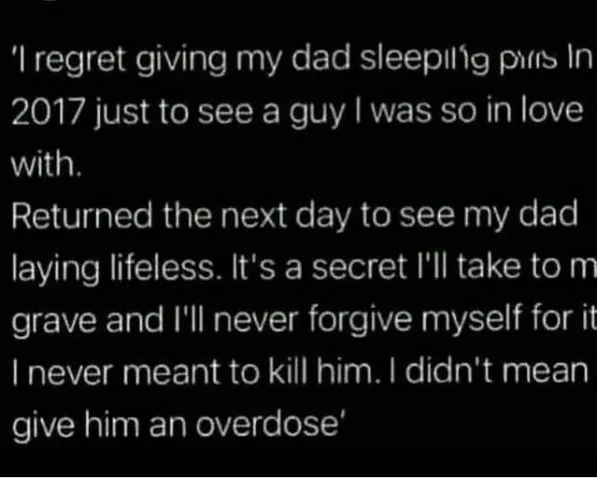 Yavuze; Ati: “Ndicuza kuba narahaye papa ibinini bimusinziriza Muri 2017 kugirango mbone uko njya gusura umusore nakundaga cyane. Gusa nasanze yitabye Imana kubera kunywa ibinini birenze urugero”