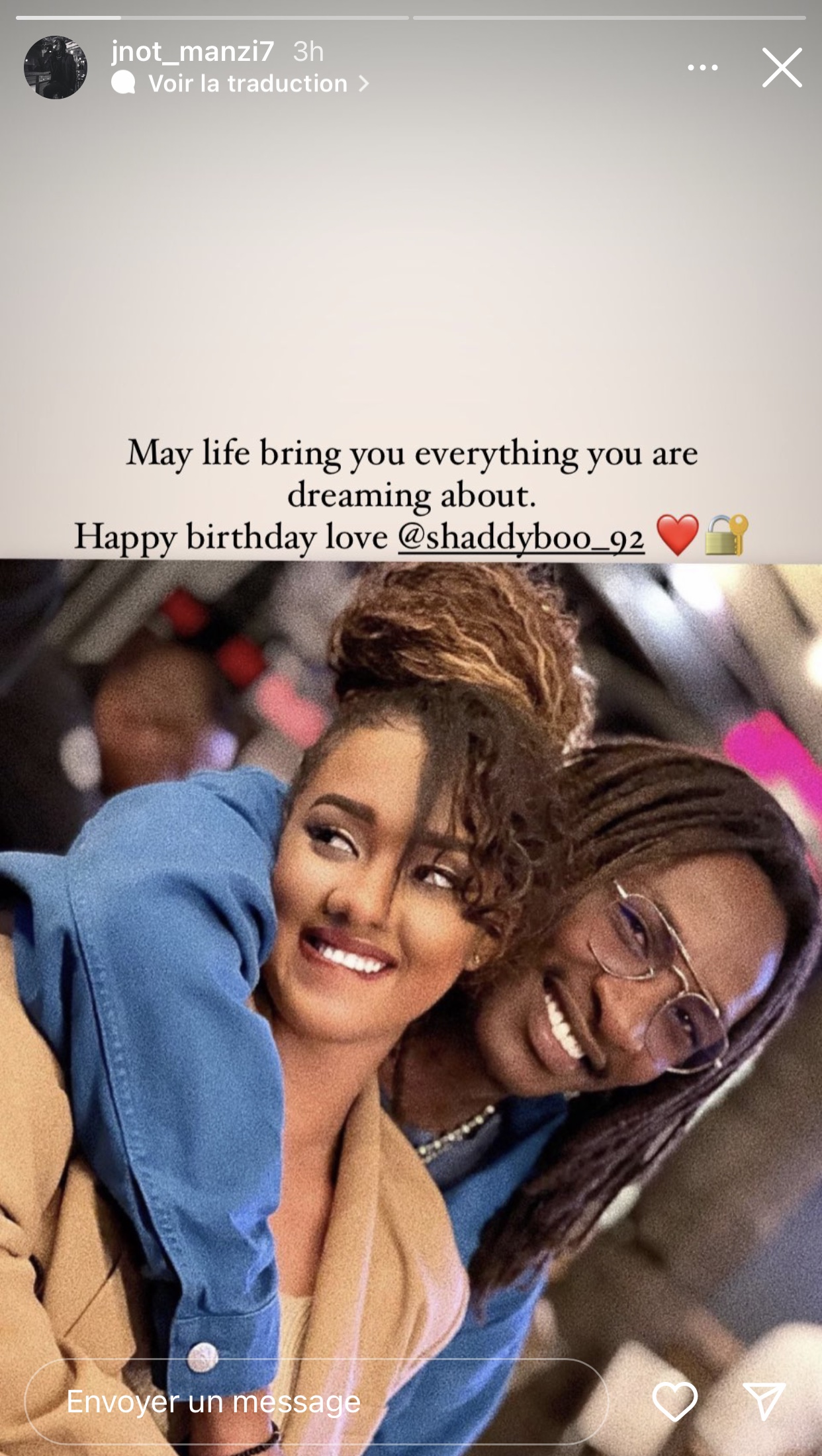 Manzi Jeannot yagize ati « May life bring you everything you are dreaming about. Happy birthday Love @shaddyboo_92 ❤️🔐 ».