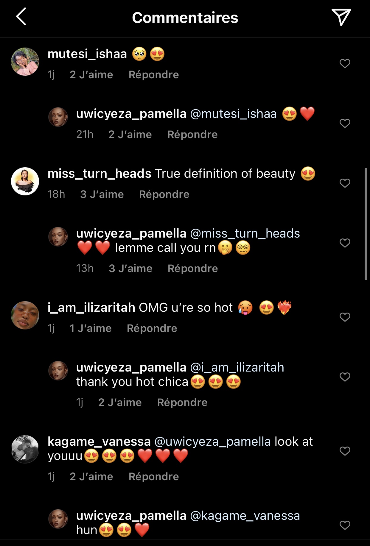 Nyuma yuko Pamella ashyize hanze aya mafoto, abamukurikira ku mbuga nkoranyambaga bayavuzeho byinshi bitandukanye abenshi batangarira ubwiza bwe. Ngibi bimwe mu byavuzwe n’abakurikira Pamella.