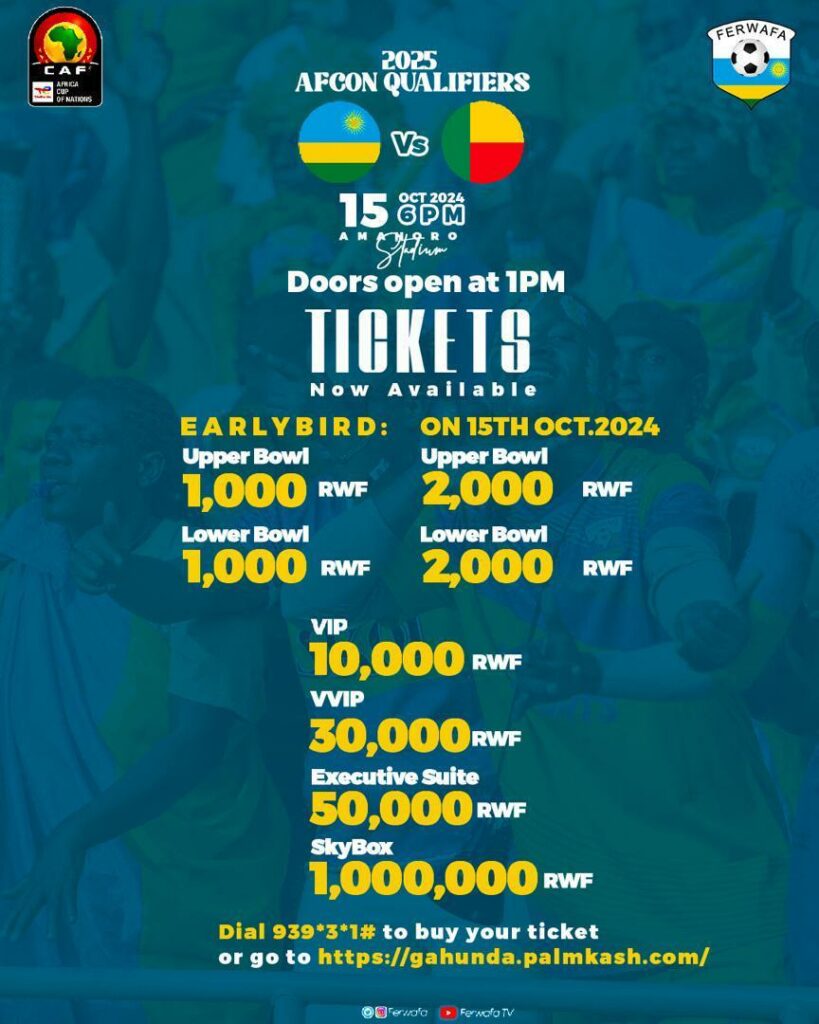 Ishyirahamwe ry’Umupira w’Amaguru mu Rwanda (FERWAFA) ryakoze impinduka ku biciro by’amatike y’umukino ugiye guhuza Ikipe y’Igihugu Amavubi na Bénin, umukino uzabera muri Sitade Amahoro ku wa Kabiri. Izi mpinduka zigamije gufasha abafana kubona amatike hakiri kare kandi ku giciro kiri hasi.