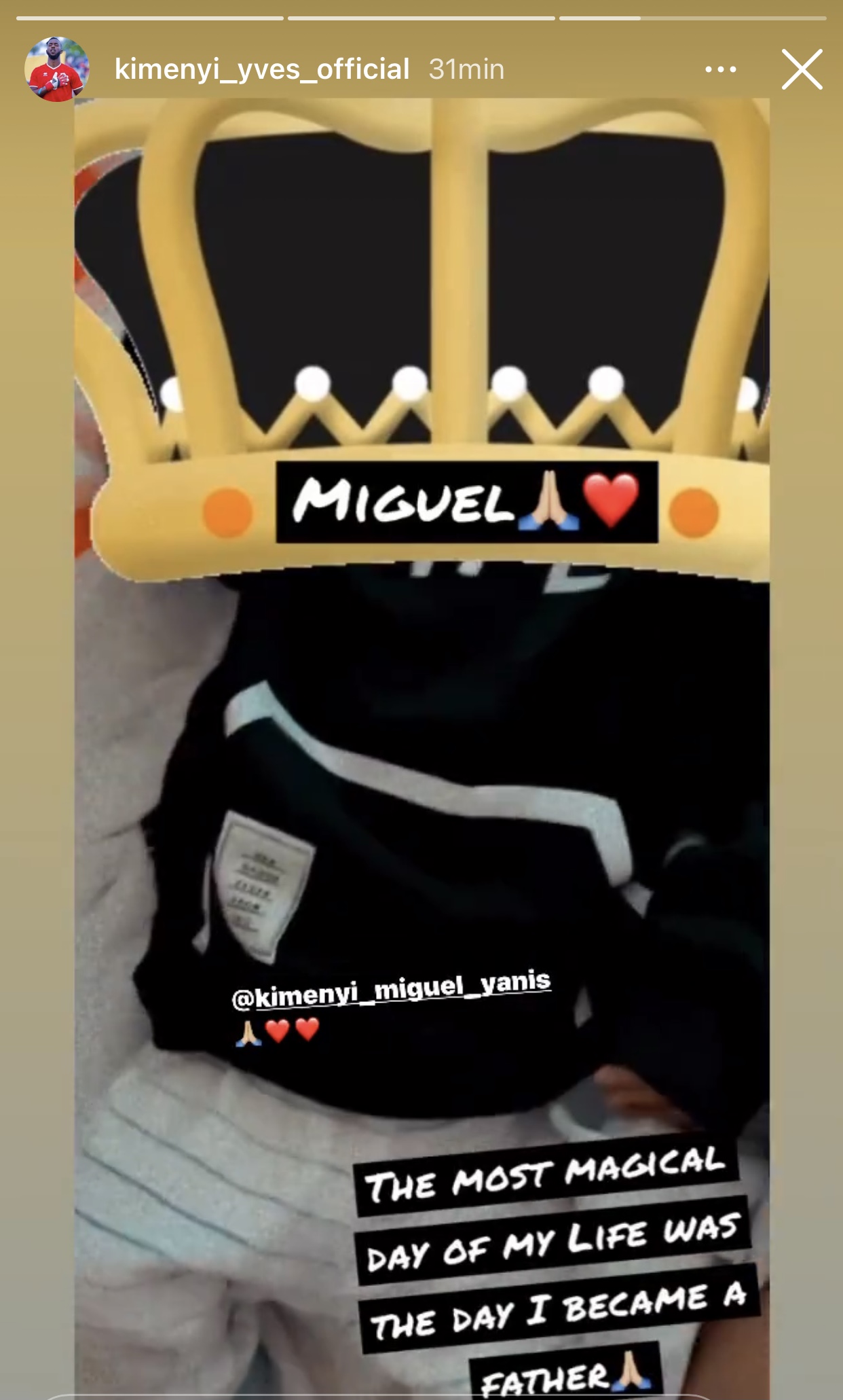 Kimenyi Yves yavuze ko umunsi atazigera yibagirwa mu buzima bwe ari uwo yabereyeho umubyeyi. Mu yandi magambo ni uwo umuhungu we (Kimenyi Miguel Yanis) yavukiyeho. Kimenyi yabivuze mu magambi agira ati « The most magical day of my life was the day I became a father ».
