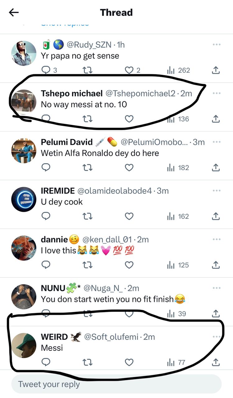 Kenshi usanga abantu bakurikira ruhago babasha kumenya ninde mukinnyi uri kwitwara neza kandi ukomeye bagendeye kuko abakinnyi bitwara mu kibuga ,icyakora umunyanijeriya (Nigerian) uvuga rikijyana ku rubuga rwa twitter witwa Femi yahawe urw’amenyo ubwo yakoraga urutonde rw’abakinnyi 10 bakomeye ku isi muri iy’iminsi.