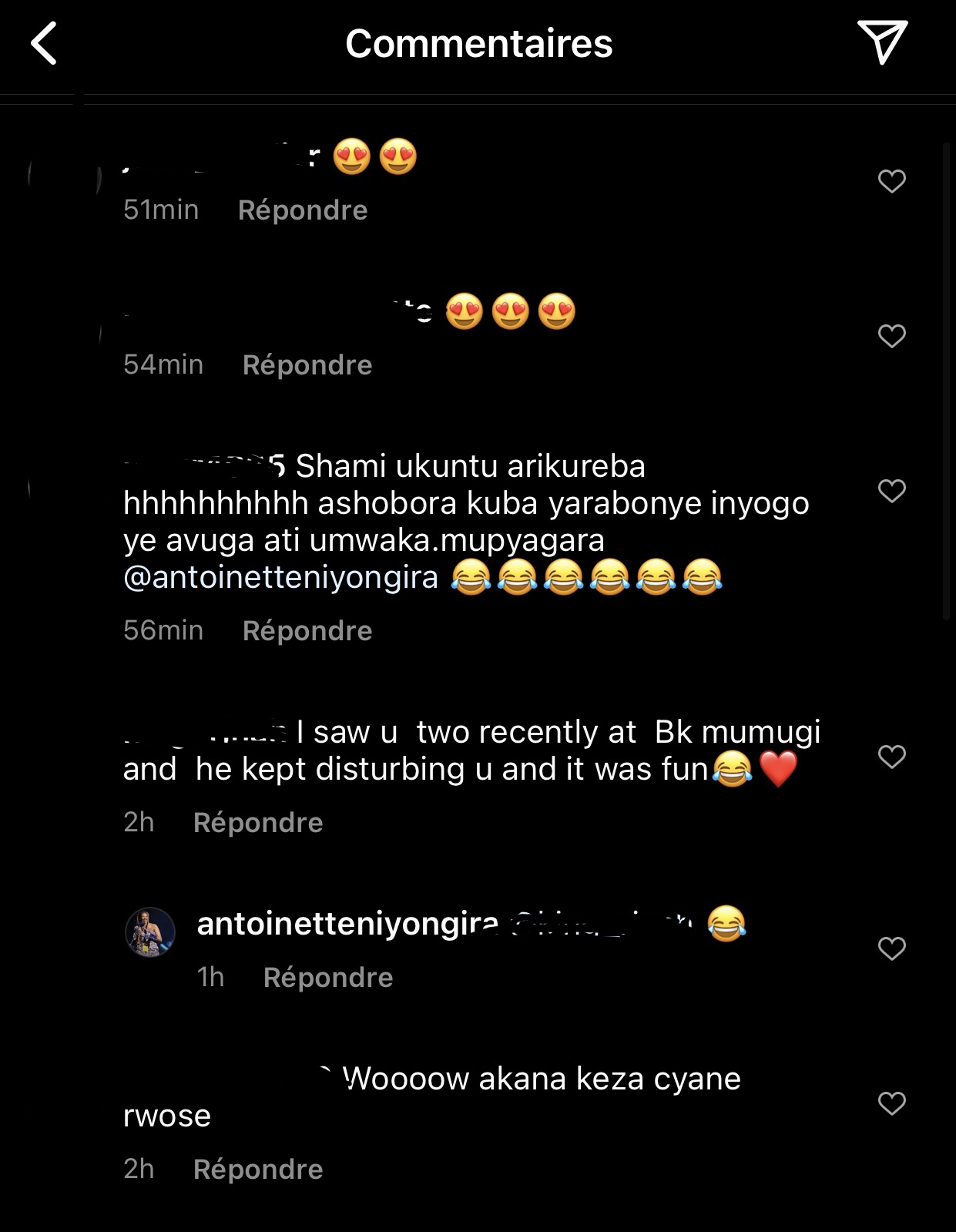 Umunyamakuru Antoinette Niyongira abinyujije ku rukuta rwe rwa instagram yashyize hanze video igaragaza aho yararimo gukina n’umwana we w’imfura, Abe Shami Kigenza. Amajwi yumvikana muri iyi video, Antoinette Niyongira aba arimo kubaza Abe ati « Tu ne bouges plus? » hanyuma agahita amubwira nanone ati « Bouge! ». Bishatse kuvuga ko Antoinette yararimo kubaza Abe impamvu atanyeganyega hanyuma nyuma agahita amusaba kunyeganyega.