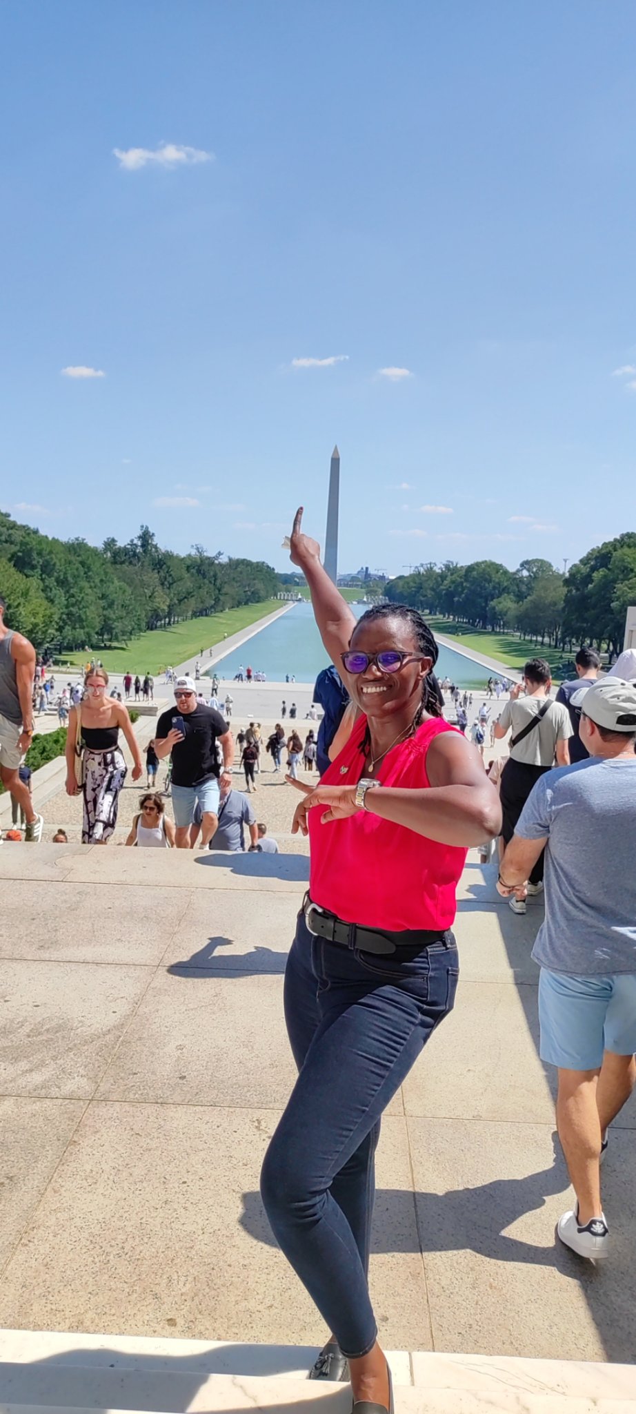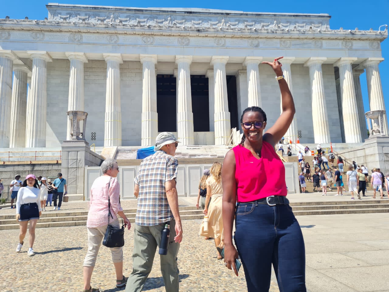 Abinyujije ku rukuta rwe rwa Twitter, Umunyamakuru Niwemwiza Anne Marie yasohoye amafoto yagiye kurira ubuzima imbere y’inzu ya Perezida wa Leta Zunze Ubumwe z’America.