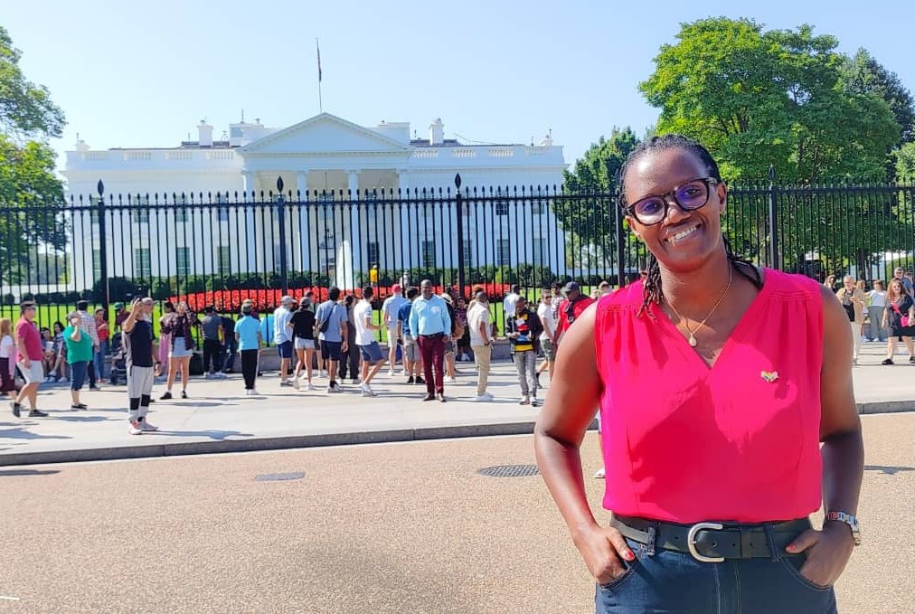 Umunyamakuru Niwemwiza Anne Marie yageze ku nzu ya Perezida wa Leta Zunze Ubumwe z’America iyi bita White House maze ahakorera ibintu byerekanye ko uko byagenda kose uhora utanyurwa.