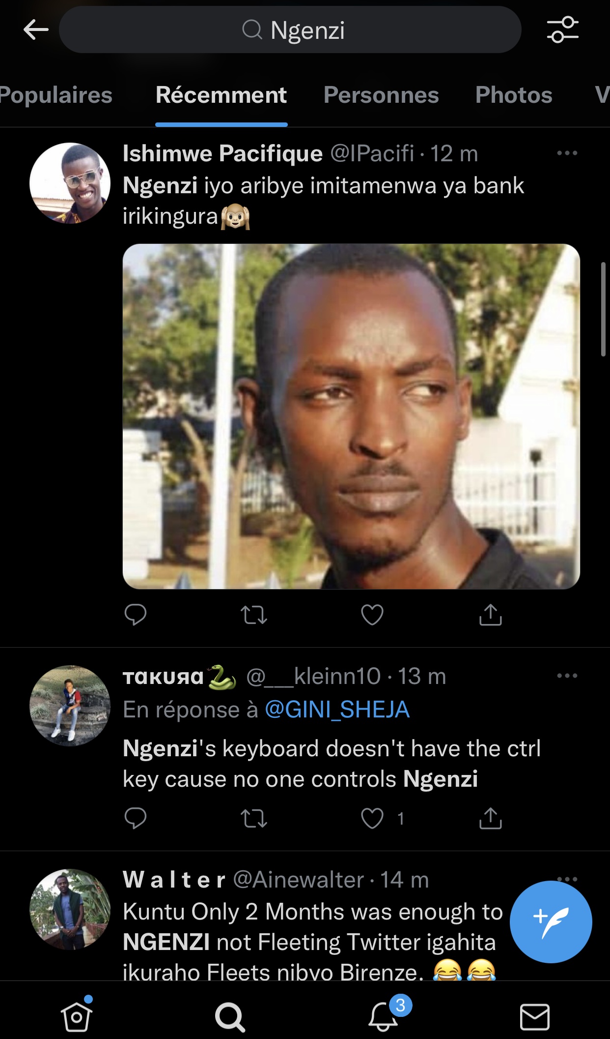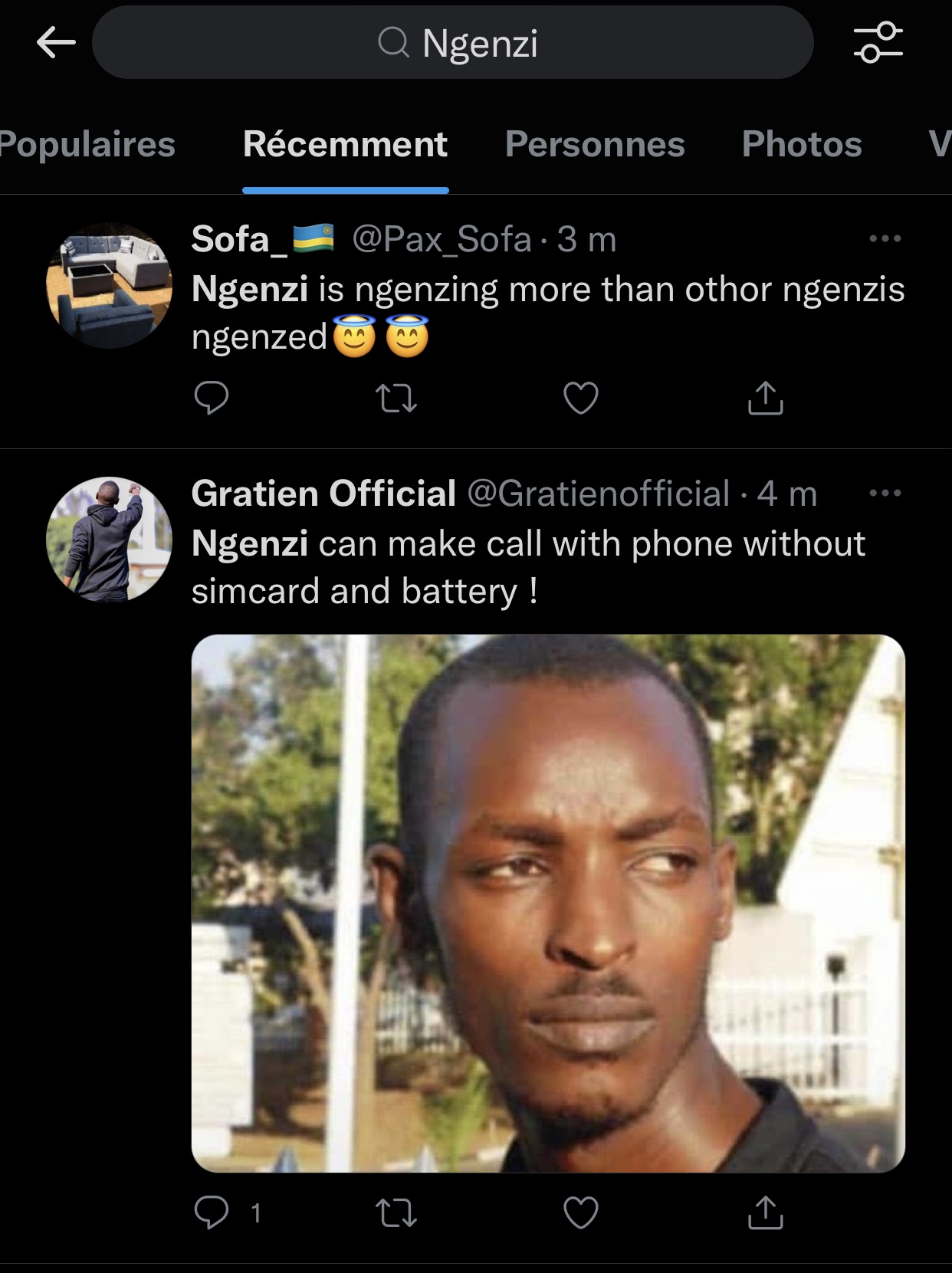 Kuri ubu Ngenzi ayoboye urutonde rw’abantu barimo kuvuga cyane kuri Twitter hano mu Rwanda. Bimwe mu byavuzwe kuri Ngenzi ni ibi bikurikira:
