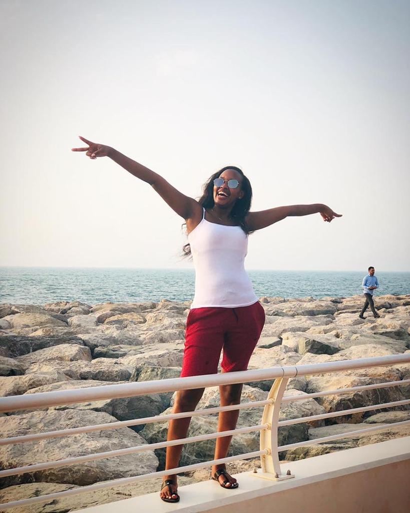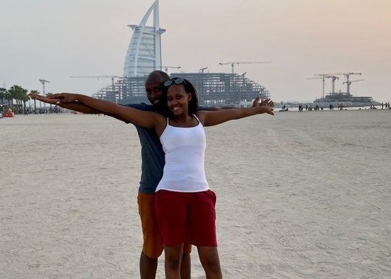 Umunyamakuru Tumusiime Juliet ukora kuri Televiziyo Rwanda mu kiganiro cy’iyobokamana cyitwa ‘RTV Sunday Live’ we n’umugabo we John Muhereza bari mu kwezi kwa buki mu mujyi wa Dubai.