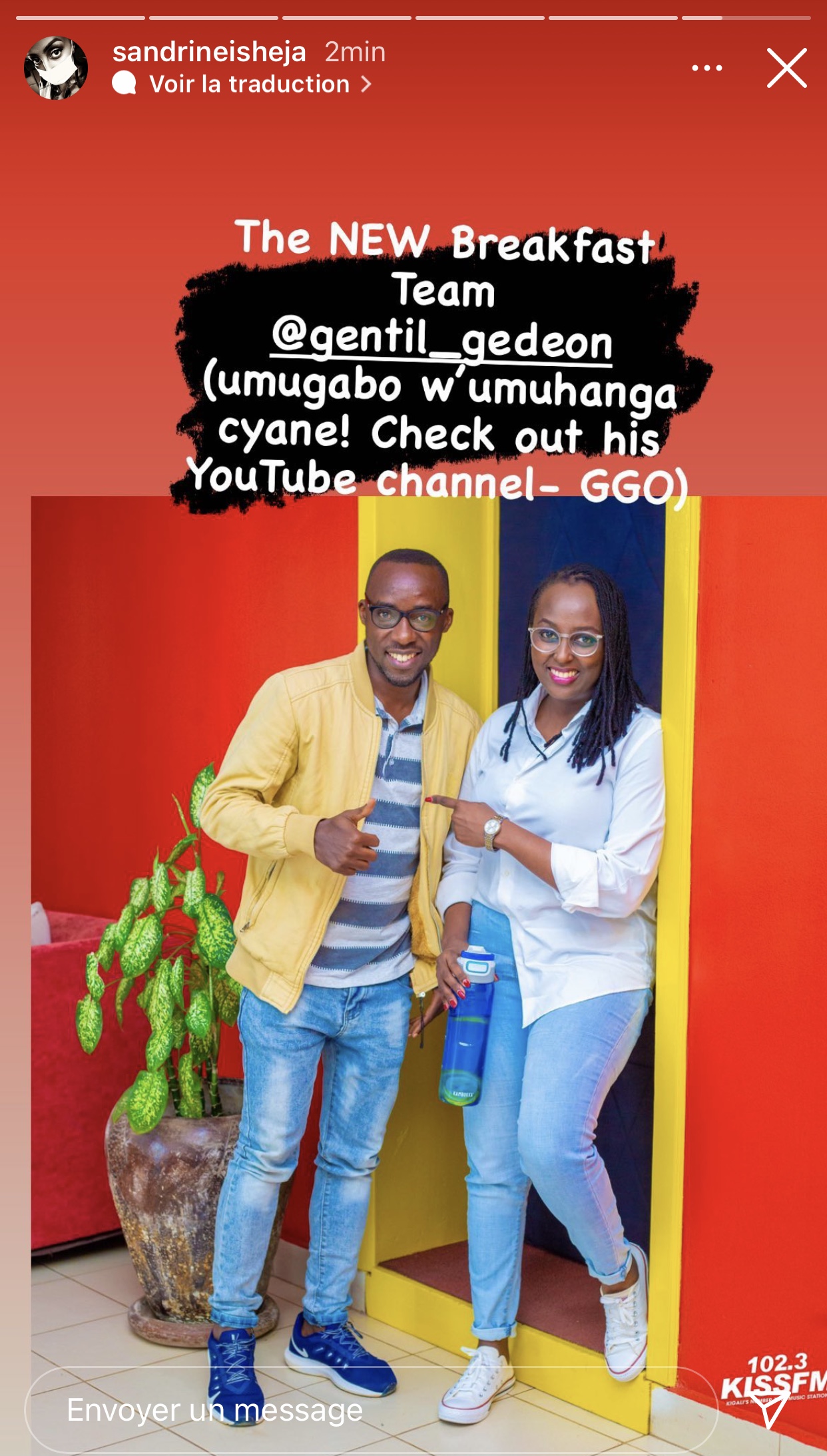 Umunyamakuru Sandrine Isheja Butera abinyujije kuri story ya instagram ye yatangaje ko Umunyamakuru Gentil Gedeon Ntirenganya ariwe wasimbuye Umunyamakuru Arthur Nkusi uherutse gusezera.