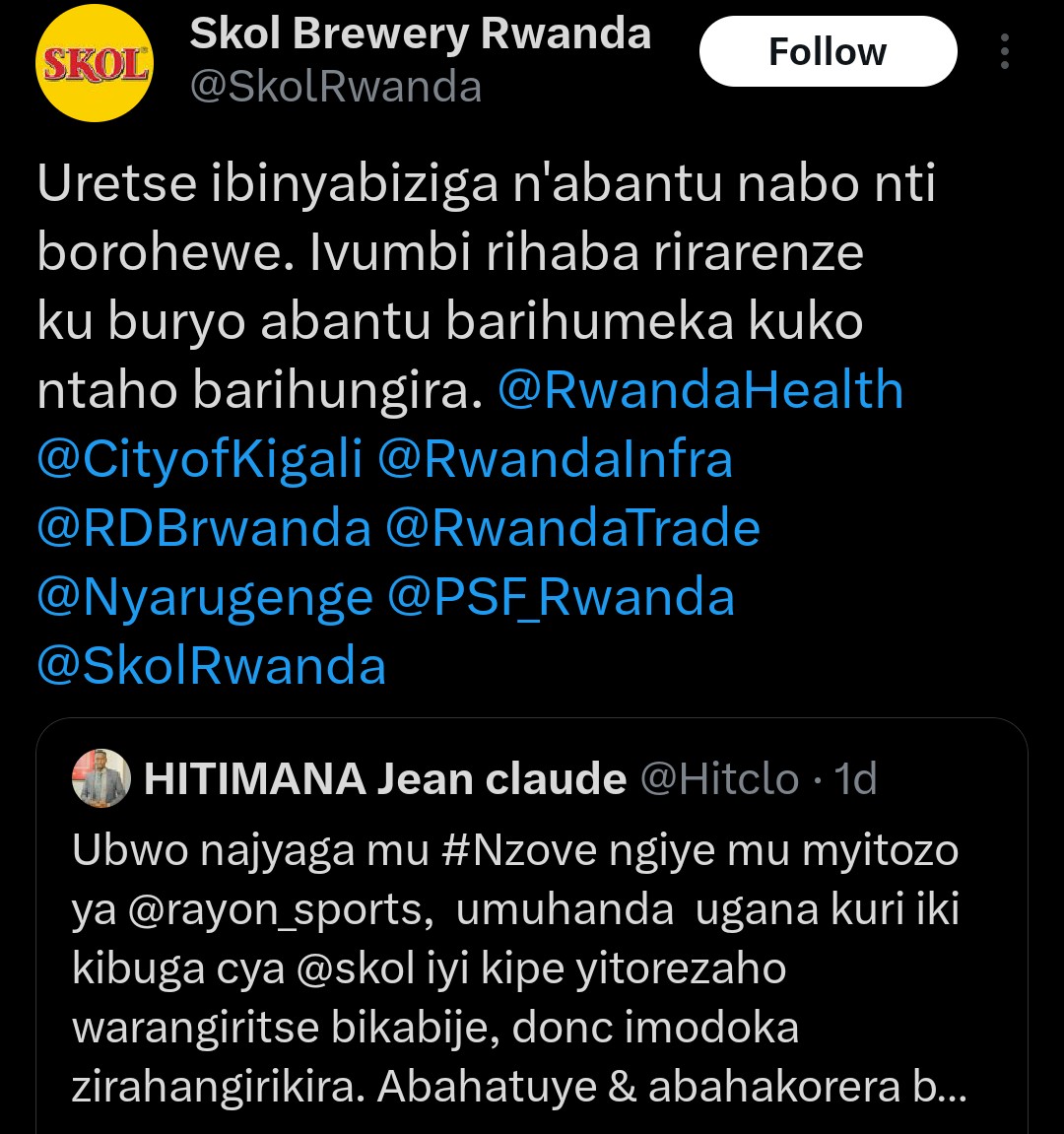 Nyuma y’ibyo, Skol na yo yahise igira icyo ibitangazaho. Aho yagize ati: “Abahatuye & abahakorera bakeneye ubufasha. Uretse ibinyabiziga n’abantu nabo nti borohewe. Ivumbi rihaba rirarenze ku buryo abantu barihumeka kuko ntaho barihungira.”