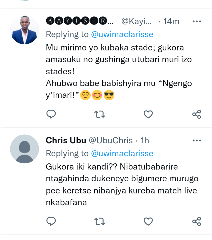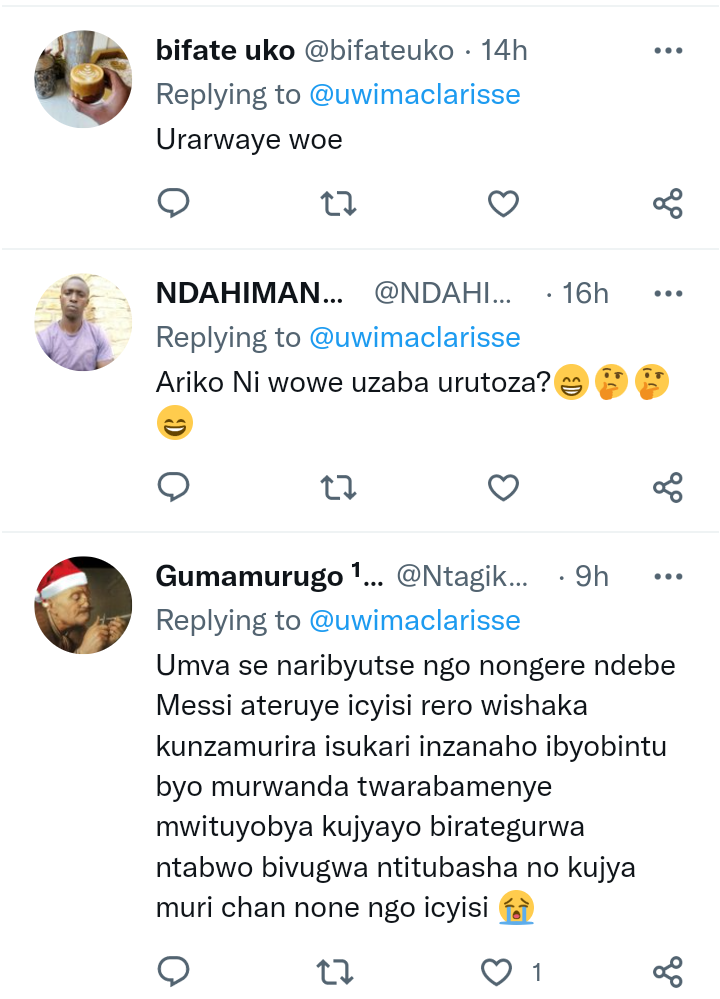 Ni nyuma y’ubutumwa yashyize kuri Twitter kuri uyu wa 18 Ukuboza 2022. Aho yanditse ati :” u Rwanda ruzitabira igikombe cy’Isi 2026″ Uretse ibisubizo yahawe mu hagenewe comments bigaragara ko abenshi badafitiye ikizere ikipe y’igihugu ko yagera mu gikombe cy’Isi.
